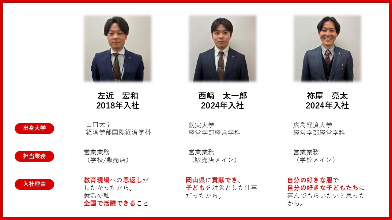 今回の記事では、岡山菅公学生服(株)の3名にお話をうかがいました。