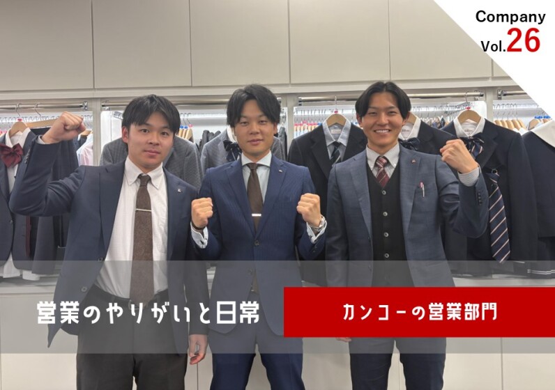 今回はカンコー学生服の営業について、皆さんに知っていただくために、岡山菅公学生服(株)の3名の営業担当者にインタビューを実施しました。